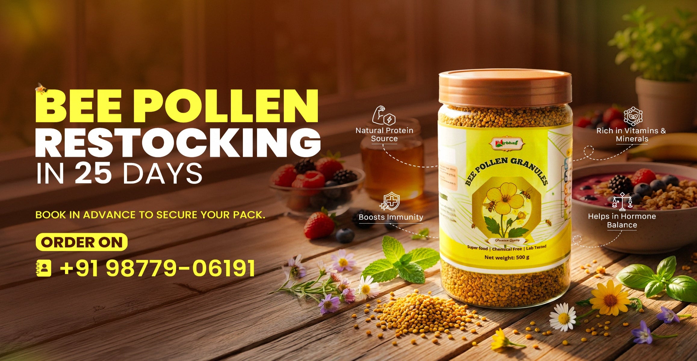 Rs. 599.00Rs. 700.00100% pure bee pollen granules, rich in proteins, vitamins, and antioxidants. Ideal forsmoothies, salads, and daily health. Benefits: Boosts energy,... -