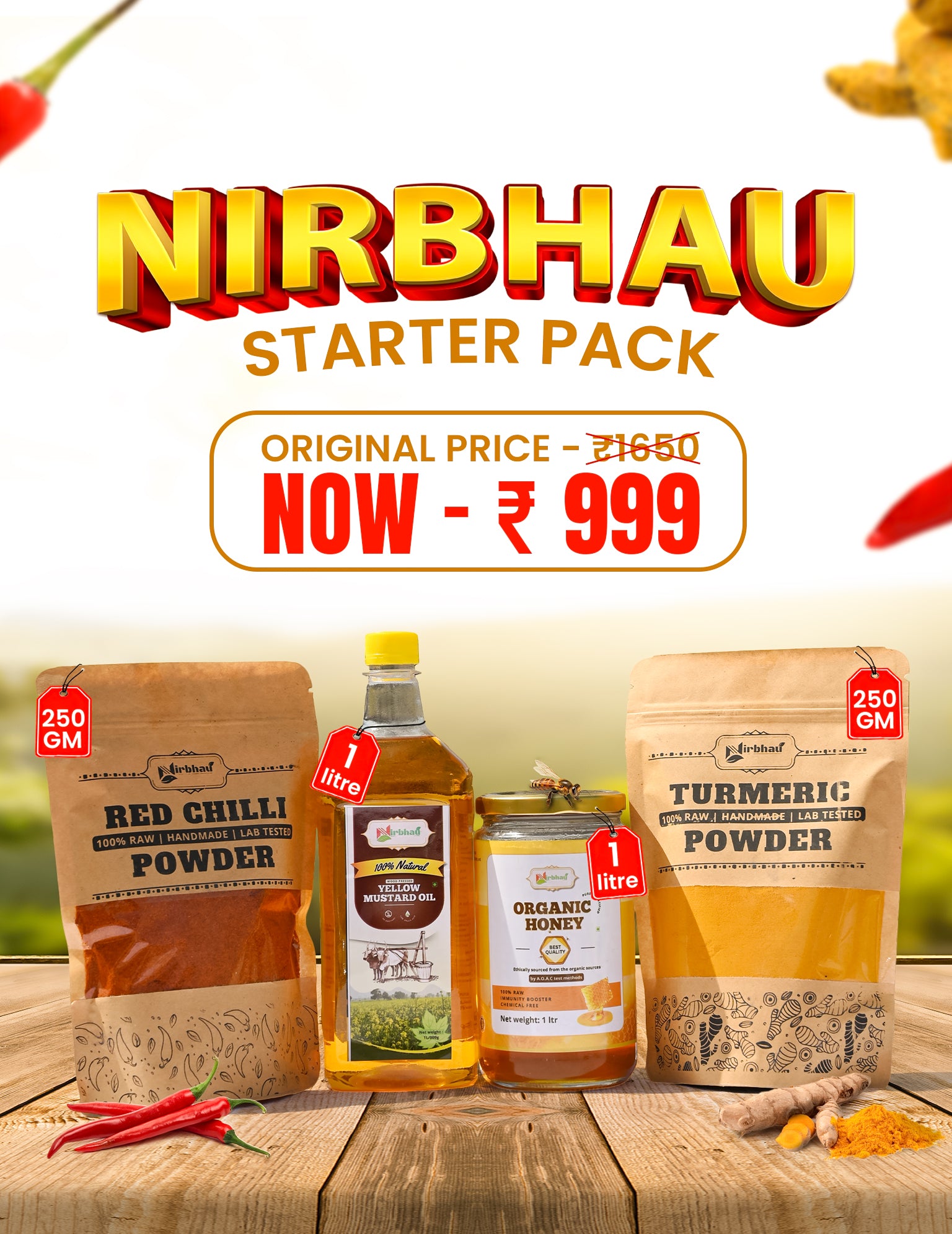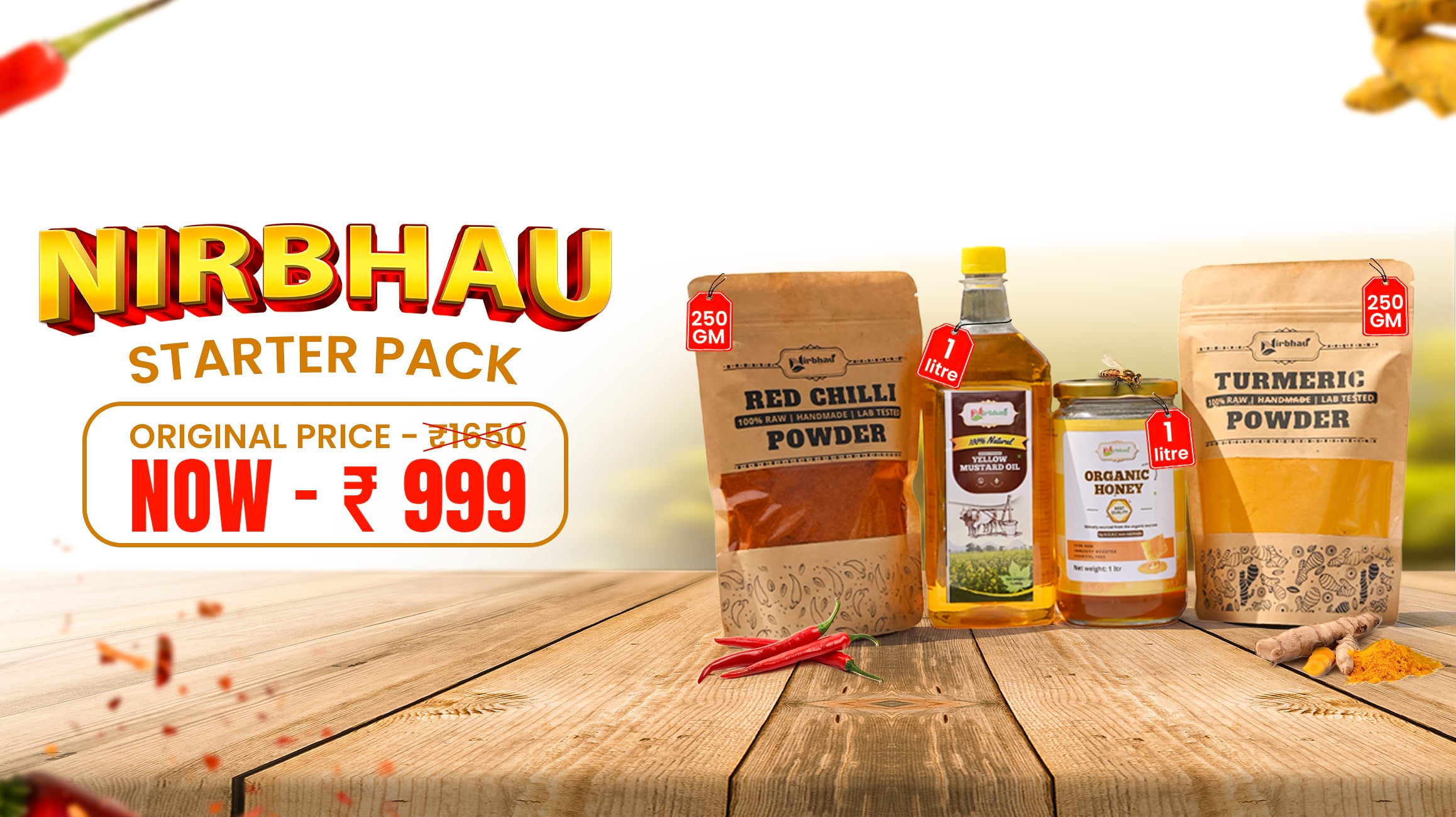Rs. 999.00Rs. 1,650.00Bring purity, taste, and tradition to your kitchen with the NIRBHAU Starter Pack — a perfect blend of sweetness, spice,... -